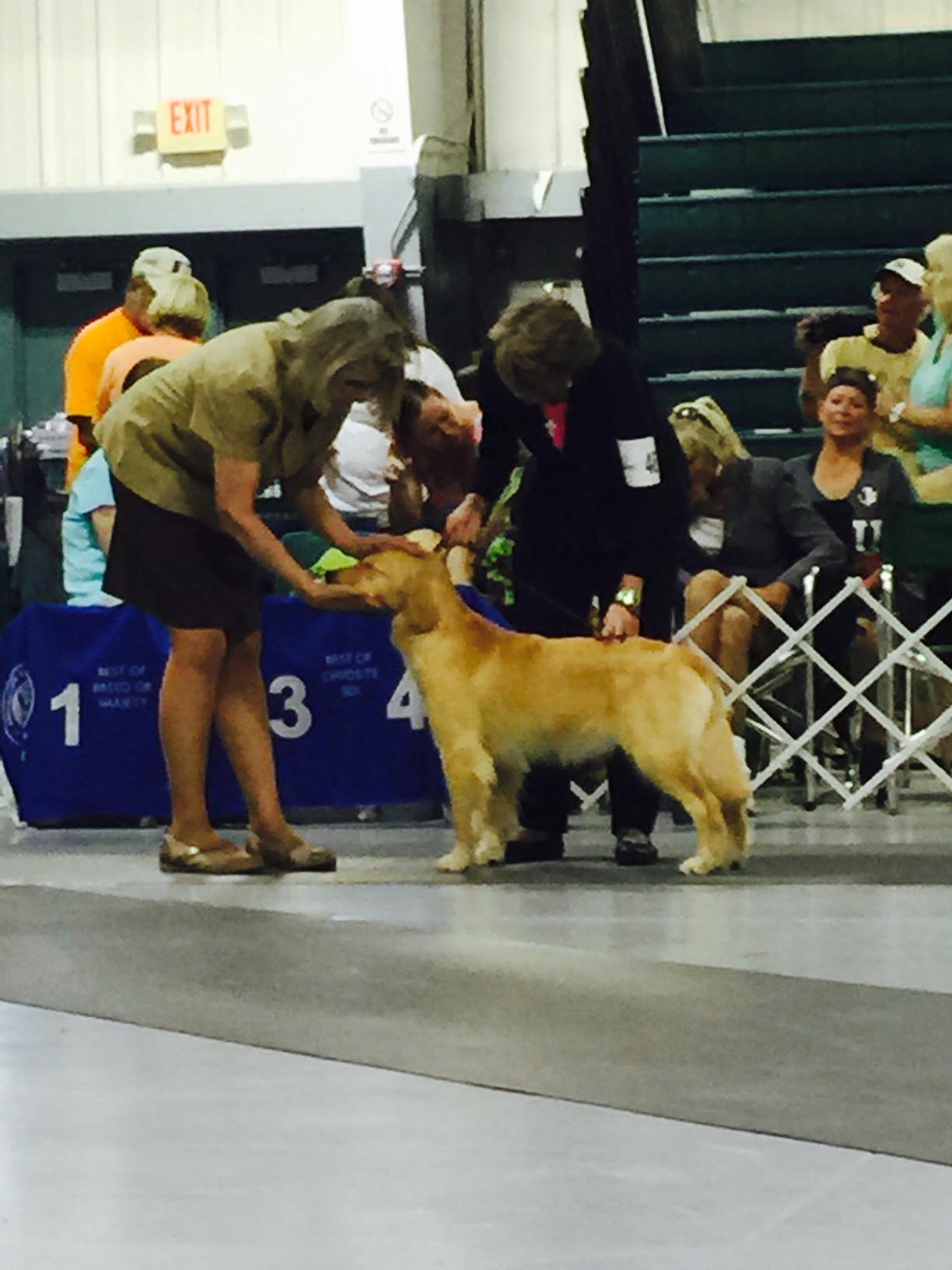 Luna has all her clearances and is OFA Good hips. She has the same genetic testing as Rhett with the addition of genetic clearances for muscular dystrophy and ichthyosis. She’s conformationally correct- and her temperament is stellar. She is Rhett’s companion and equally good with all ages of people and types of animals. She is closely related to Rhett via Glory so we will not have Rhett x Luna puppies.